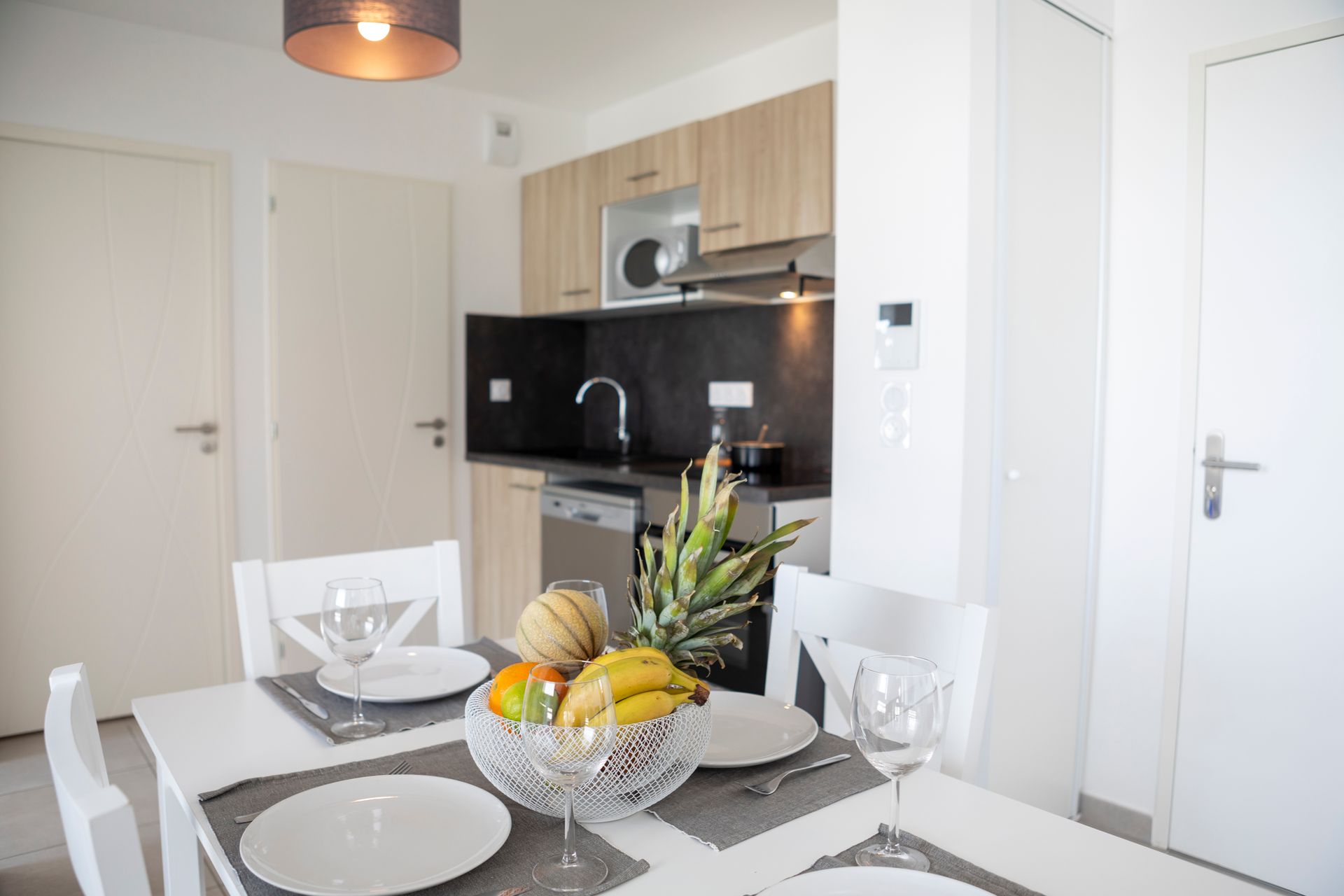 MY Hôtel Résidences propose de spacieux appartements avec cuisine entièrement équipée, climatisation dans chaque pièce de vie, salon confortable et terrasses.
